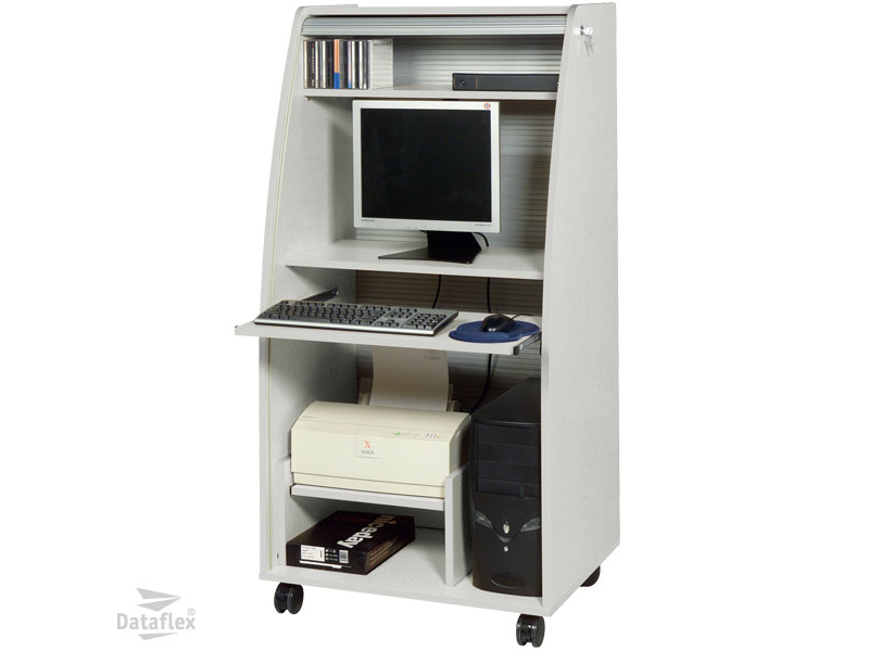 The Dataflex Computer Cabinet aluminium/lightgrey (80.900) is a compact mobile computer cabinet with a lockable tambour door to secure and protect a computer, peripheral devices and documents. Also keeps away dust when the door is closed. Pull/push keyboard tray for easy access to/storage of keyboard and mouse. Rests on four castor wheels. KD packaged.