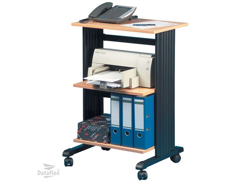 The Dataflex File Stand black/beech (85.503) can be used for documents or files and can hold a weight up to 20 kg. For storage of administrative files (max. 10 files). Snap-on side covers for cable management. On 4 castors (2 lockable). KD packed.