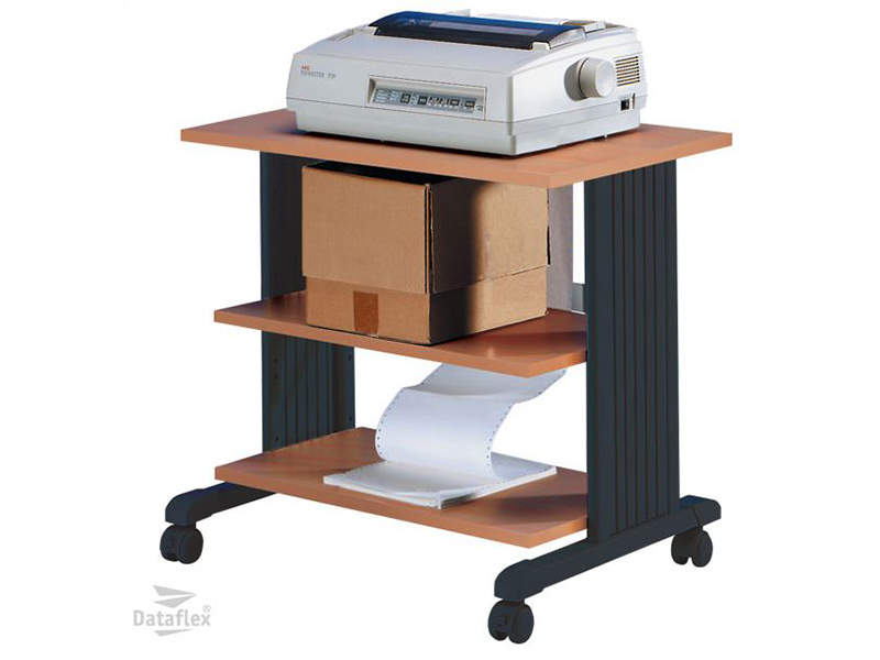 For matrix printers. 3 levels (bottom feed slot in top shelve). Snap-on side covers for cable management. 4 castors (2 lockable). KD packed.