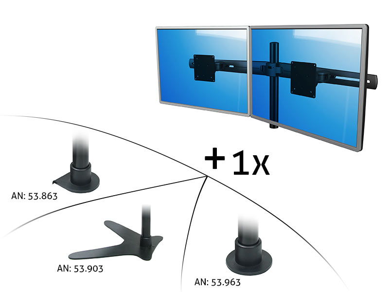 Note: For a complete bracket a table mount (desk clamp 53.863, bolt through desk 53.963 or desk plate 53.903) is required.