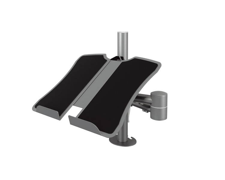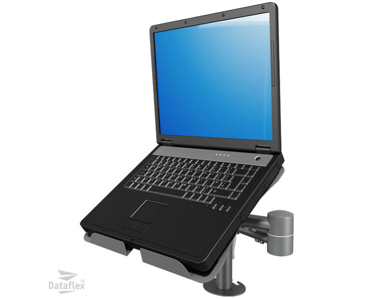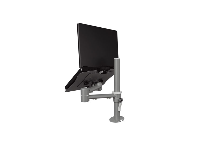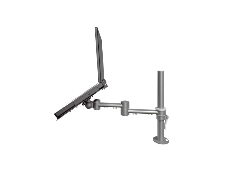 With the ViewMate Style Notebook arm, one can create an ergonomical height and depth adjustable workplace for notebook with the greatest ease. The width adjustable platform is fitted with anti skid rubber to keep both smaller (14") and larger (17") in place. Comes with both bolt through desk and desk clamp.